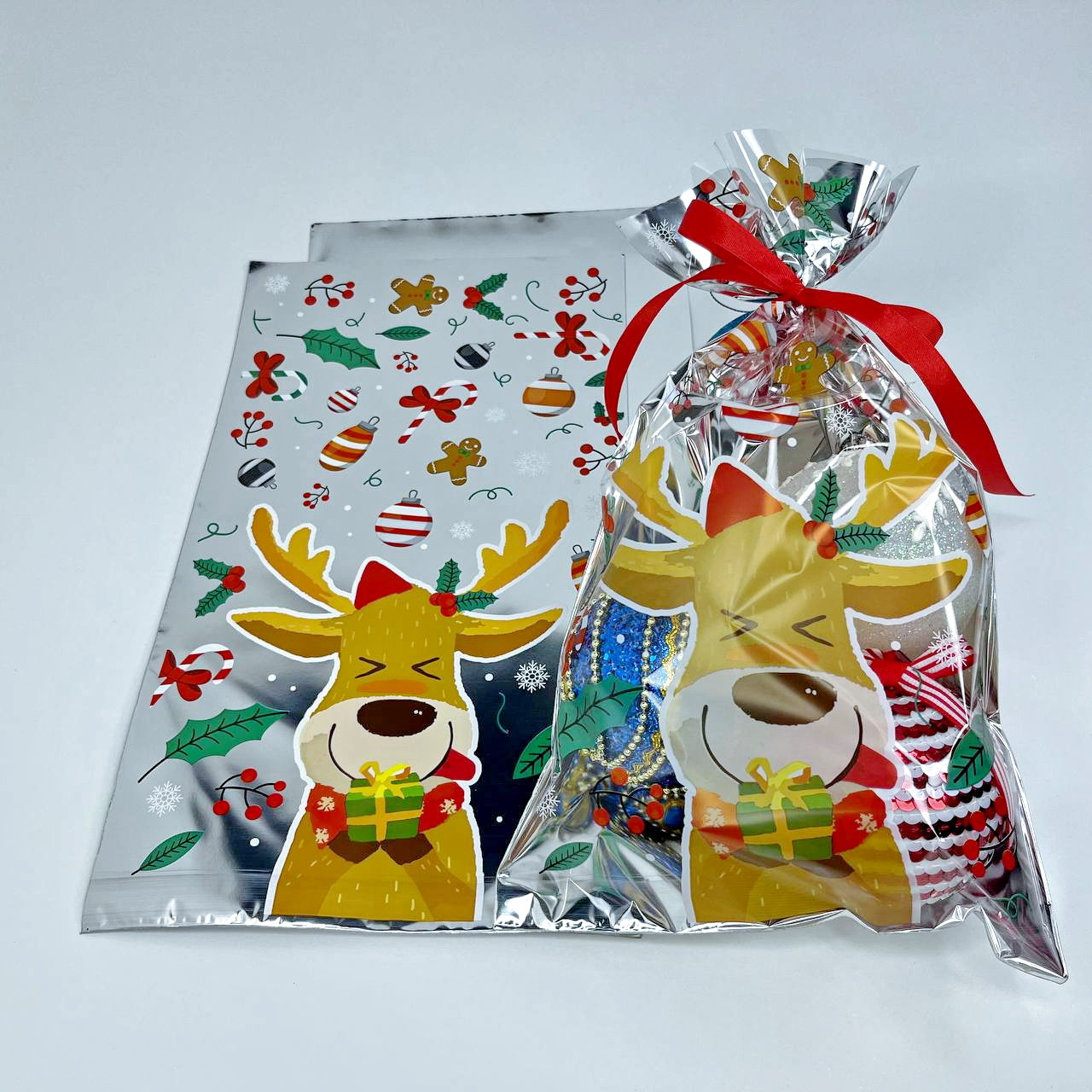 Пакети для подарунків, 20*35 см, "Веселий олень", поліпропілен + срібло