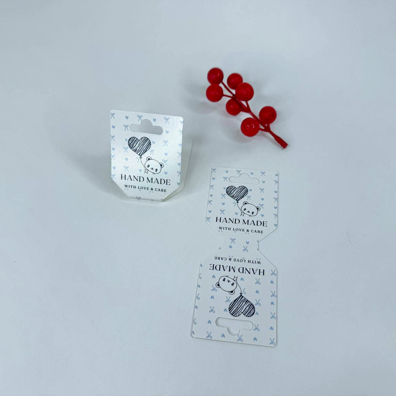 Бірка (тримач) для прикрас, 50*127 мм, "Hand made with love & care" ▶ (10 шт.)