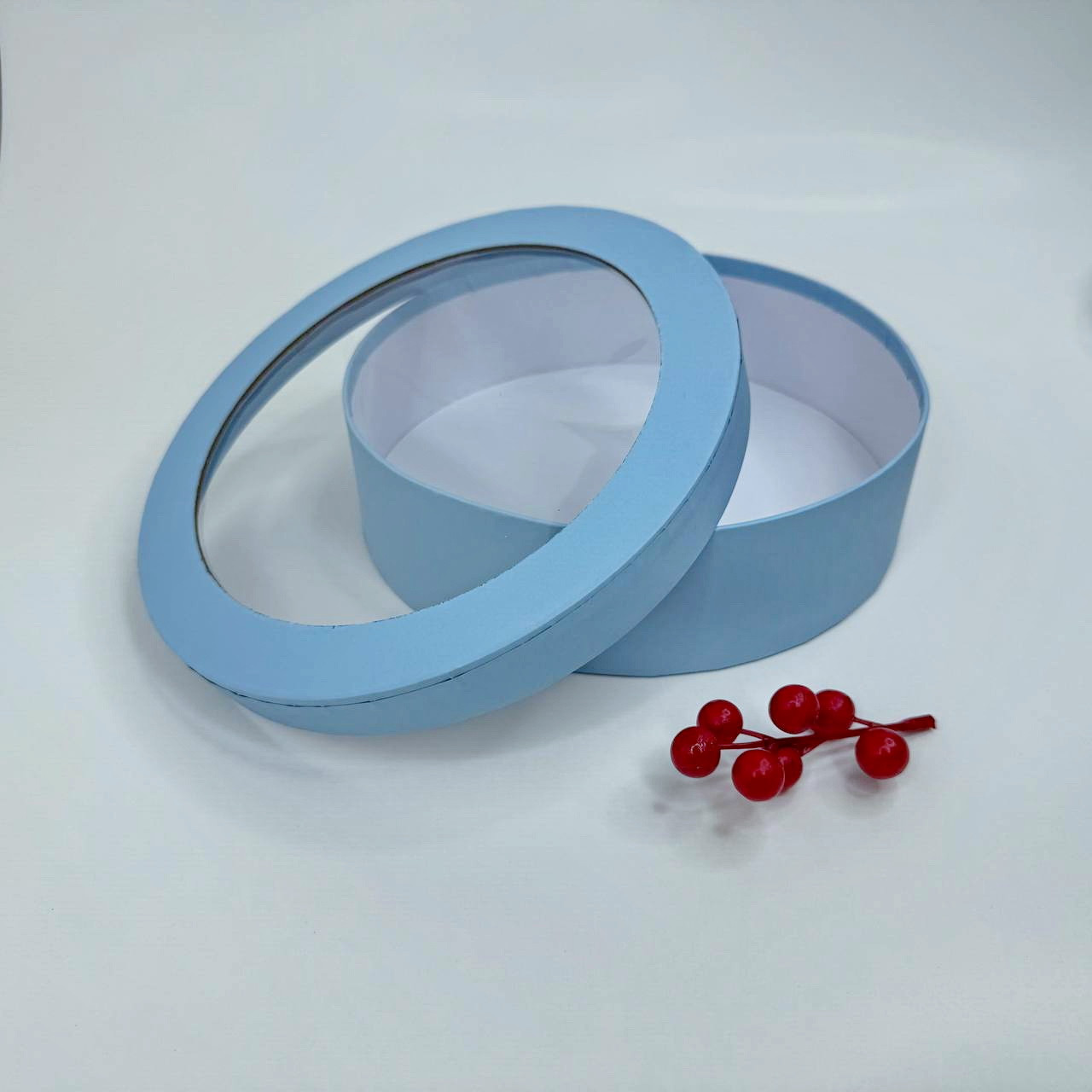 Кругла коробка для зефіру, Ø22*6 см, з вікном, блакитна
